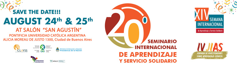 - August 24 and 25: 20th International Service-Learning Conference. Buenos Aires, in the "San Agustín" Auditorium at the Pontifical Catholic University of Argentina, Alicia Moreau de Justo 1300. More information at http://www.clayss.org.ar/seminario/index.html