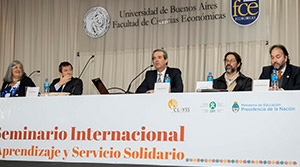 La apertura del Seminario estuvo a cargo de Autoridad de la Facultad de Ciencias Económicas de la Universidad de Buenos Aires, el Dr. Jorge San Martín, Presidente de CLAYSS; el Lic. Andrés Delich, Director Oficina Buenos Aires de la OEI y el Prof. Sergio Rial, Coordinador del Programa Nacional Educación Solidaria del Ministerio de Educación de la Nación.